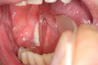 Μετεξακτική λοίμωξη(Εικ.1) μετά από εξαγωγή του #17, μη ανταποκρινόμενη στη συντηρητική αγωγή. Μετά από πανοραμική ακτινογραφία(Εικ.2) και καλλιέργεια, θετική για Β-στρεπτόκκοκκο(ομάδα C κατά Lancefield), έγινε τοπική απόξεση και συρραφή με την ενδεικνυόμενη αντιβιοτική κάλυψη. Η λοίμωξη δεν υποχώρησε και με την υπολογιστική τομογραφία(Εικ.3 και 4) επιβεβαιώθηκε η κλινική υποψία στοματοκολπκής επικοινωνίας και οδοντογενούς ιγμορείτιδας.